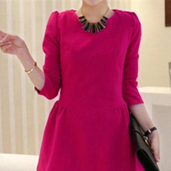 秋冬季新款长袖呢子连衣裙女款韩版修身圆领打底裙气质淑女a字裙